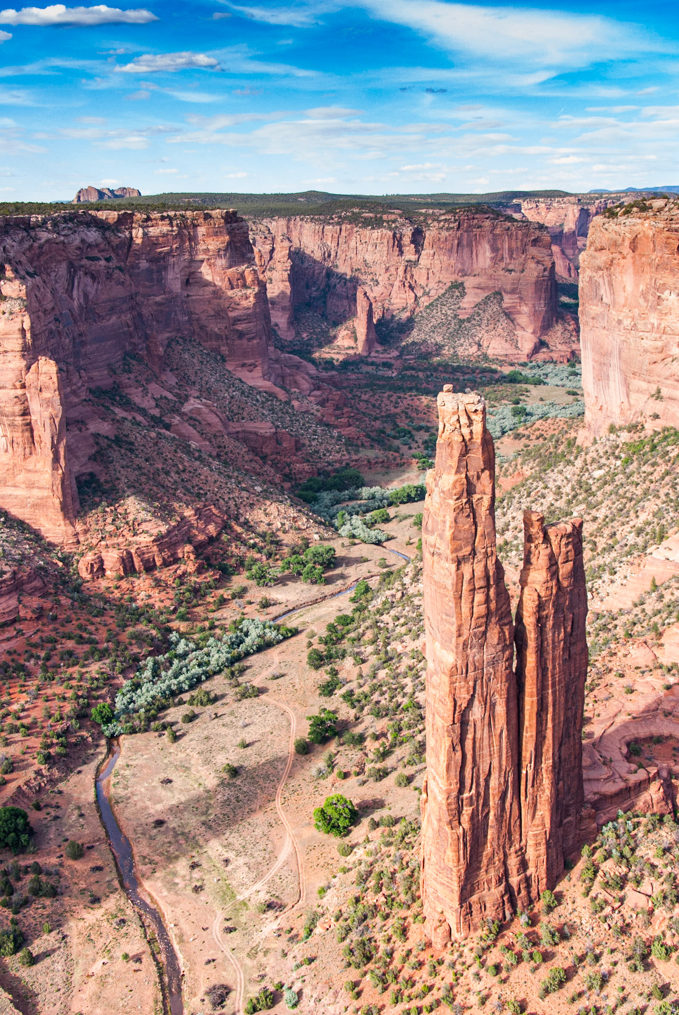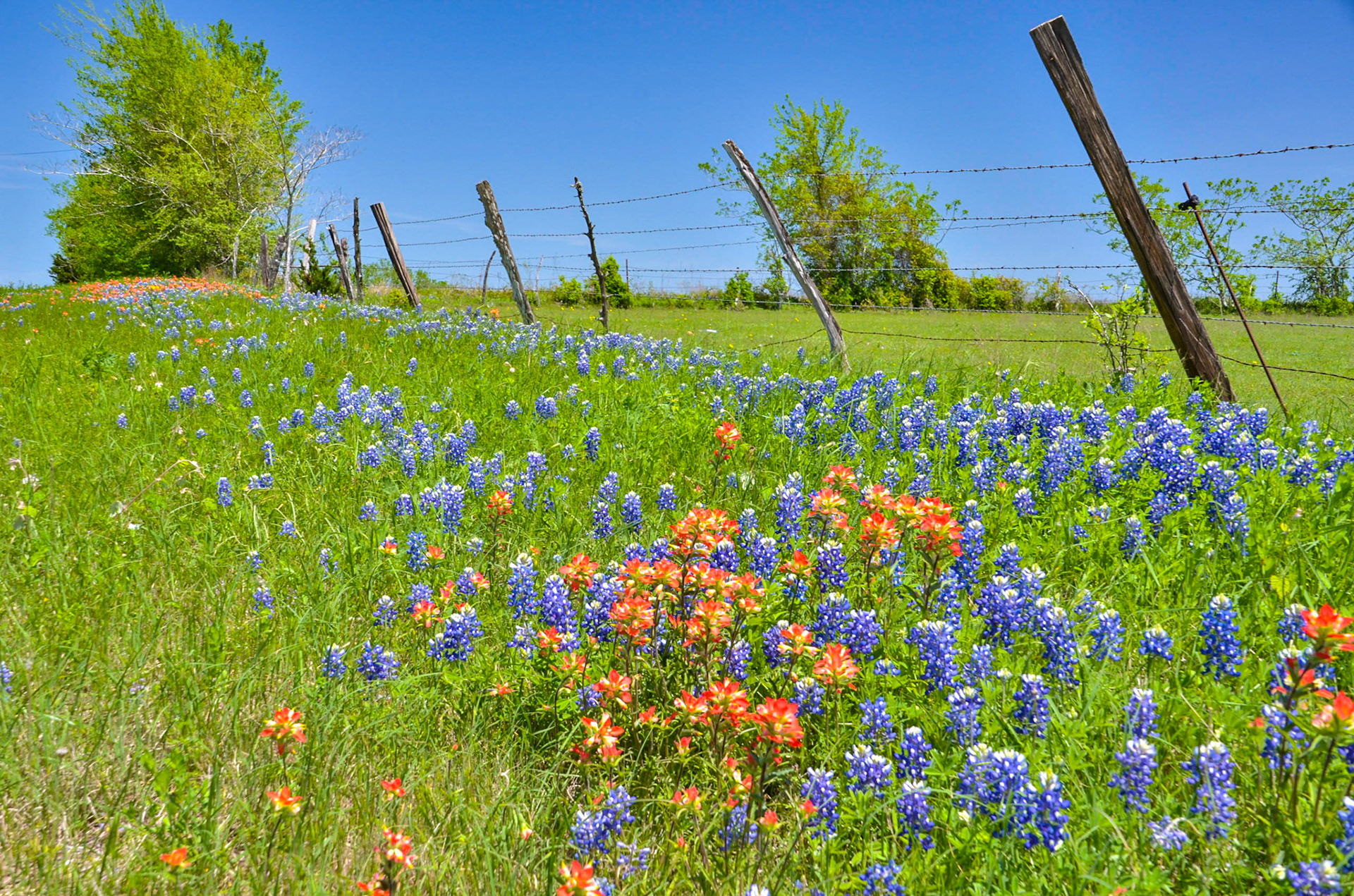 Road winding past shade tree in Spring